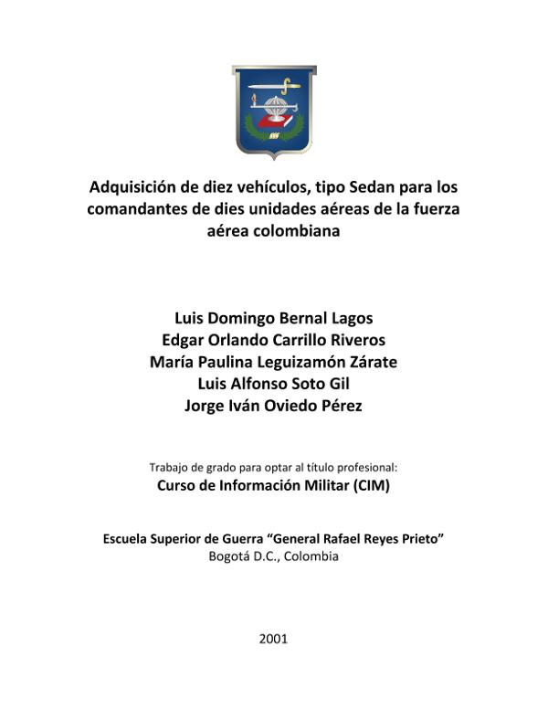 Adquisición de diez vehículos, tipo Sedan para los comandantes de diez unidades aéreas de la Fuerza Aérea Colombiana