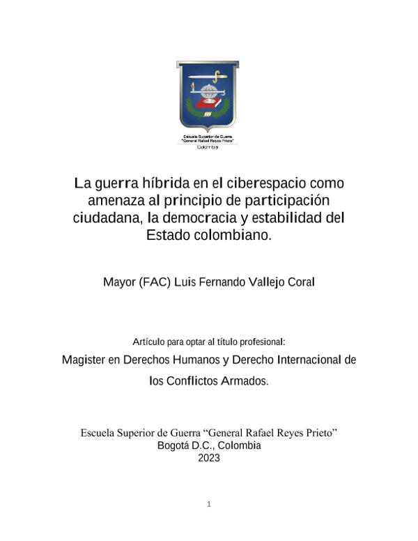La guerra híbrida en el ciberespacio como amenaza al principio de participación ciudadana, la democracia y estabilidad del Estado colombiano.