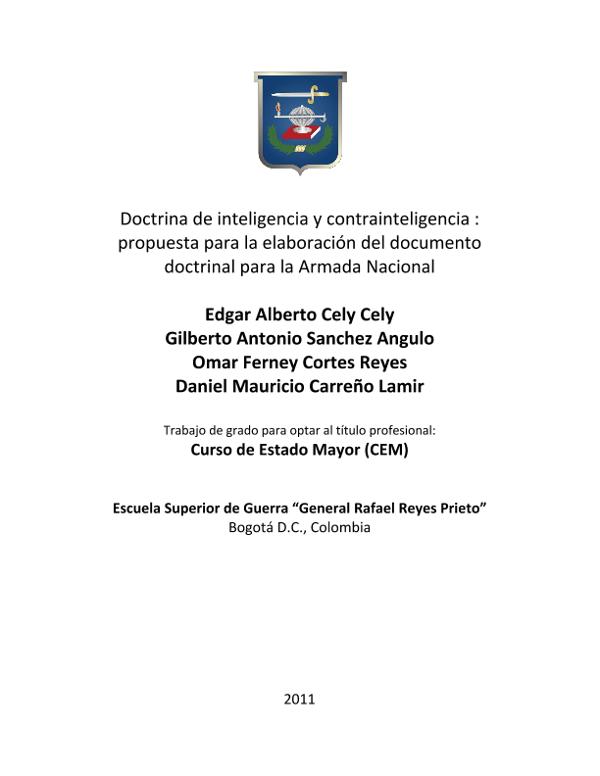 Doctrina de inteligencia y contrainteligencia : propuesta para la elaboración del documento doctrinal para la Armada Nacional