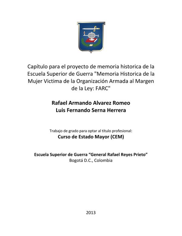 Capítulo para el proyecto de memoria histórica de la Escuela Superior de Guerra Memoria Histórica de la Mujer Victima de la Organización Armada al Margen de la Ley: FARC